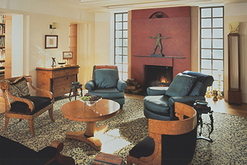 The home and studio of Michael Graves, “The Warehouse,” in Princeton, New Jersey, was donated to Kean University to be used by the MGC. Graves used the space as a residence and art studio, but he also treated the house as a museum and gathering place for seminars and salons. The Warehouse is a microcosm of Graves’ design ethos: a postmodern (with a nod toward classicism), holistic treatment of interior and exterior spaces.